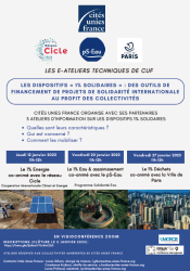 Cités Unies France organise avec ses partenaires une série de 3 ateliers techniques portant sur les dispositifs « 1% solidaires » comme outils de financement de projets de solidarité internationale au profit des collectivités. L’Atelier 1% Déchets, co-animé avec la Ville de Paris, a eu lieu (…)